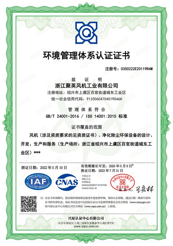 環(huán)境管理體系認(rèn)證證書