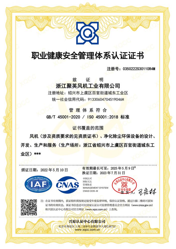 職業(yè)健康安全管理體系認(rèn)證證書